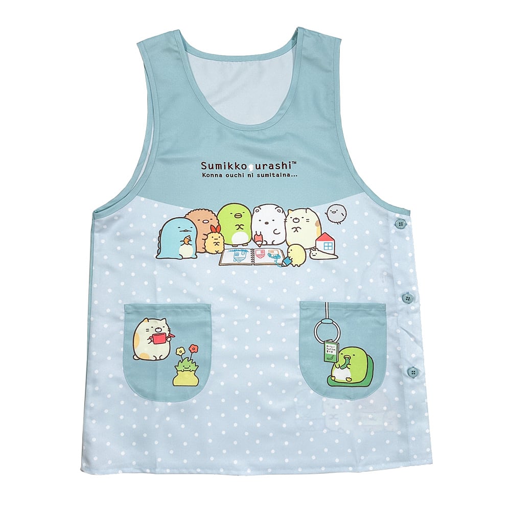 エプロン 大きいサイズ 保育士 すみっコぐらし(グリーン)かぶり 2L〜4L【メール便送料無料】配送日不可・ギフト不可 44342