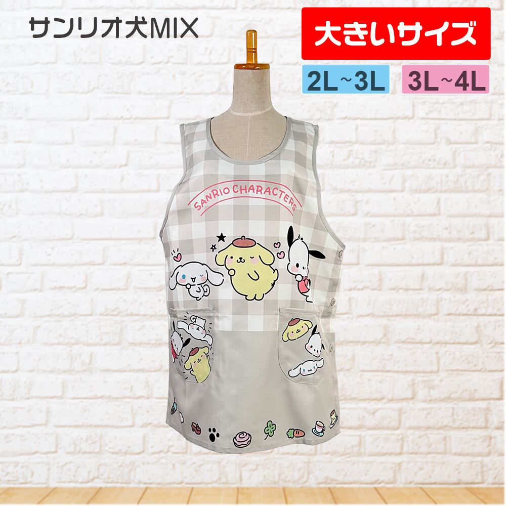 エプロン 大きいサイズ 保育士 サンリオ犬MIX(グレー)かぶり 2L〜4L【メール便送料無料】配送日不可・ギフト不可 42312