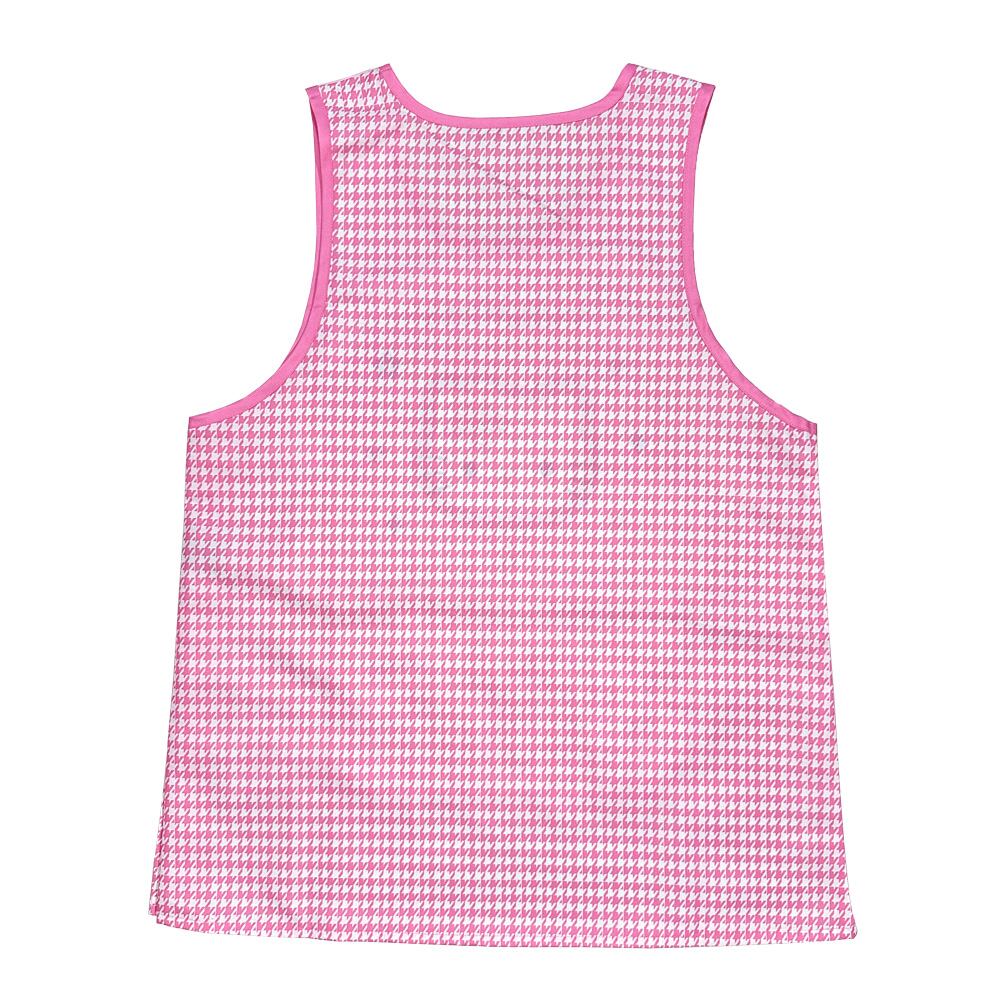 襟ぐり、袖ぐり、ポケットはビビットなピンクカラーで、目を引きます。