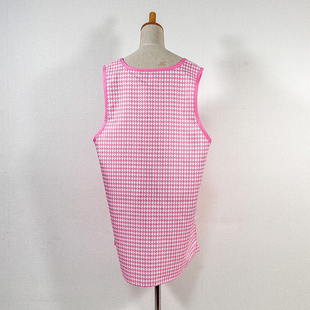 後ろ身ごろ、前裾側がピンクと白の千鳥格子模様です。