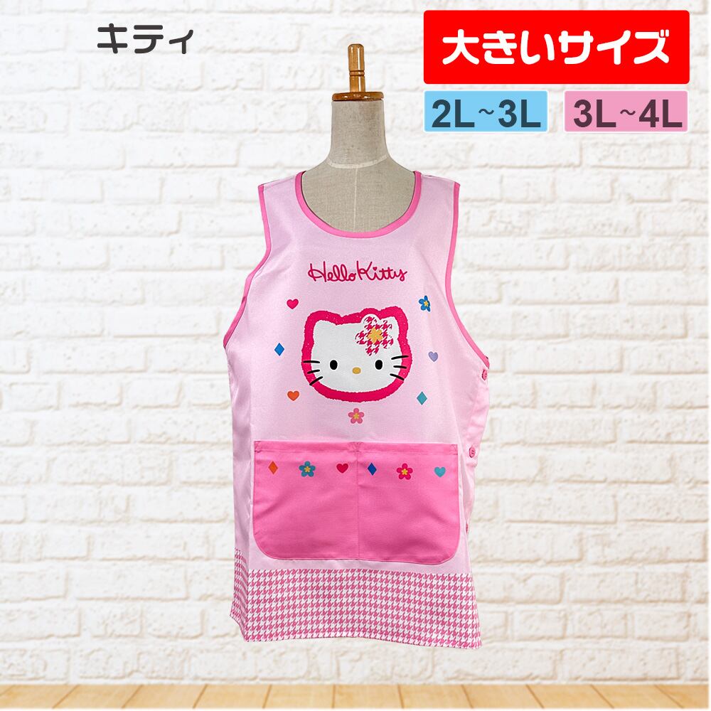エプロン 大きいサイズ 保育士 ハローキティ(ピンク)かぶり 2L〜4L【メール便送料無料】配送日不可・ギフト不可 41268